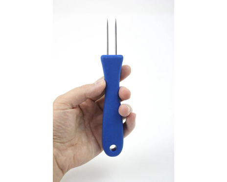 Filégaffel med två piggar av bra kvalitet. Passar utmärkt även för professionellt bruk. Behändigt redskap när man filear fisk. Längd 16 cm, piggarnas längd 4 cm.